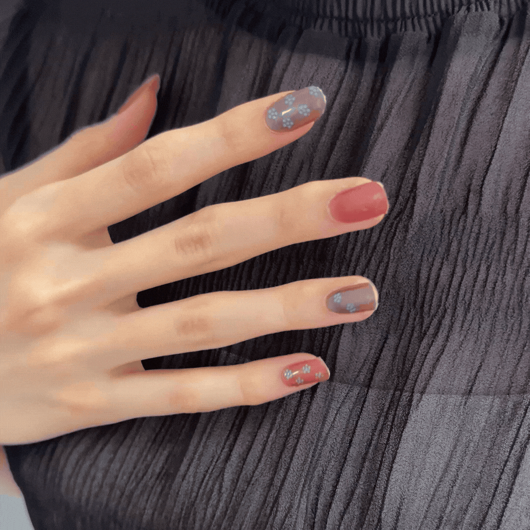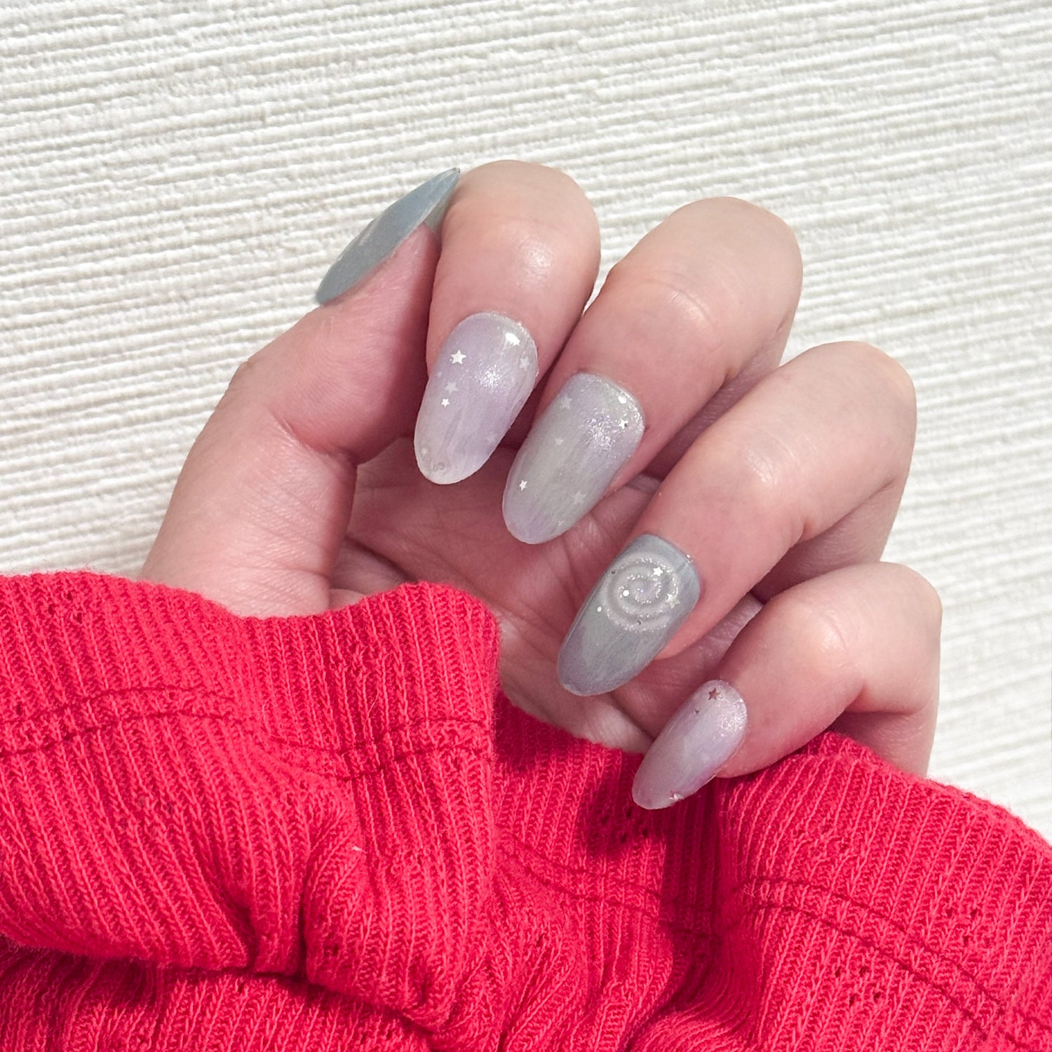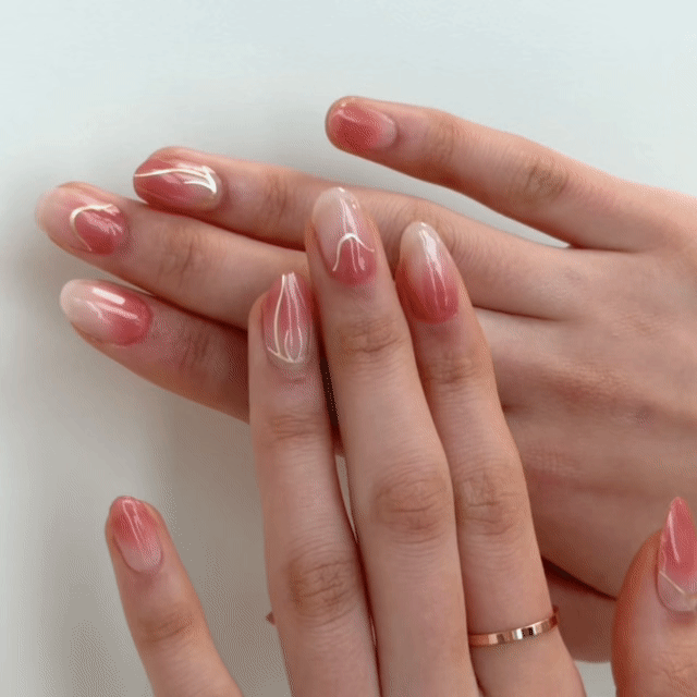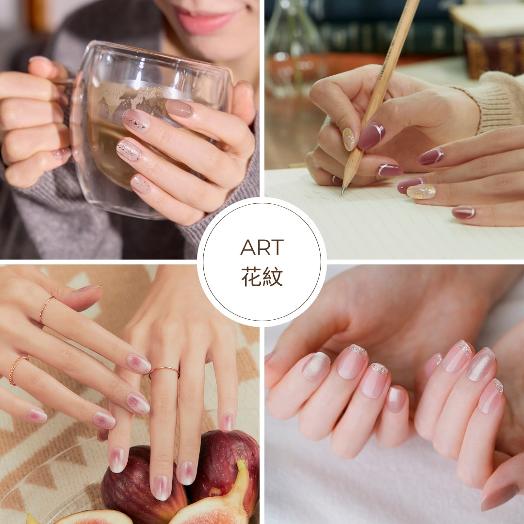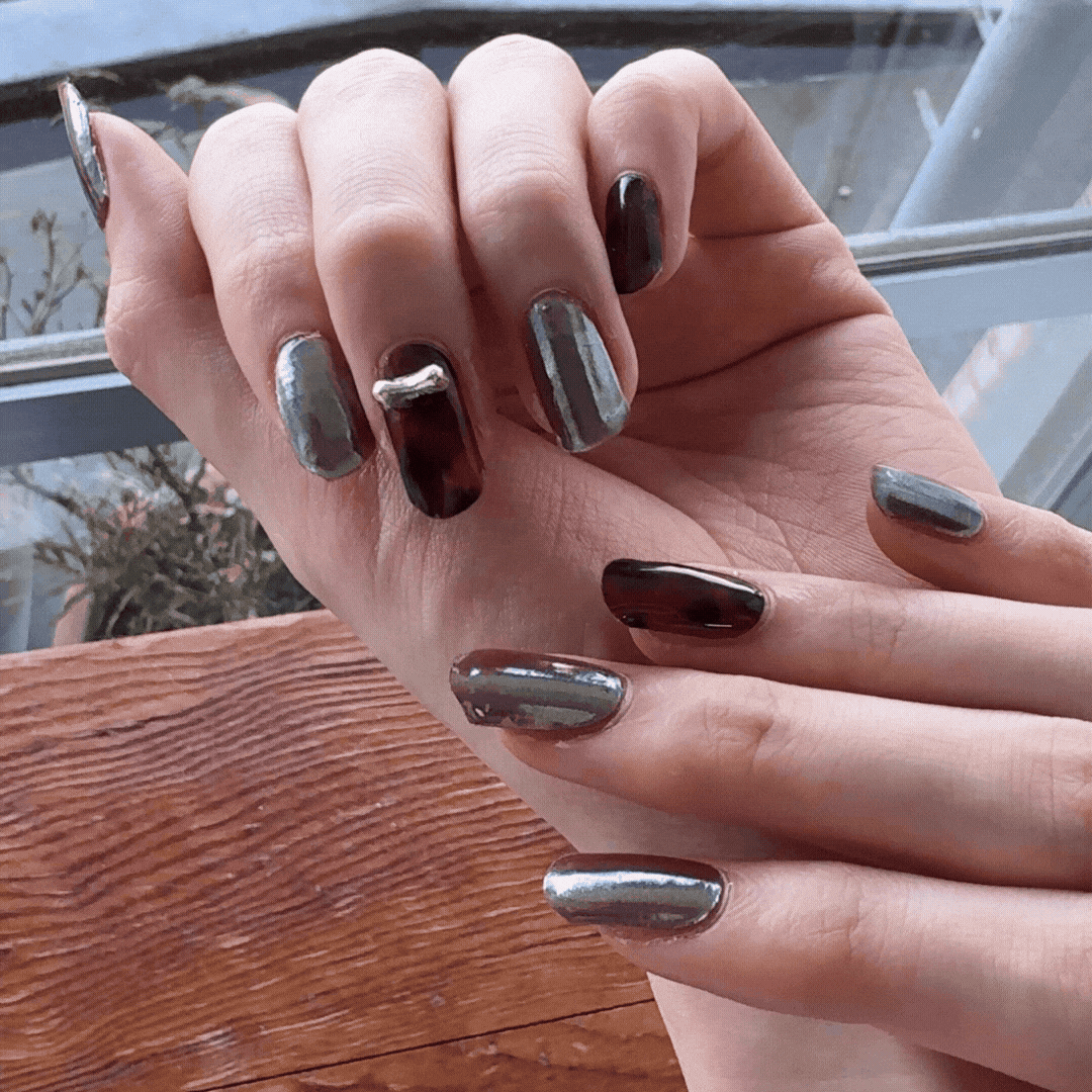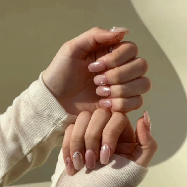 試著用指甲當白色畫紙黎到做水彩畫🎨 銀箔裝飾為微妙的繪畫增添了涼爽感,睇落好似油漆被塗抹!帶有微妙既裸色底色。呢款係超推薦日常指甲貼💛