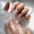 柔和的乳白色底色,令人聯想起白雪皚皚的原野,營造出潔淨寧靜的氛圍 ; 柔和散落的白色亮片, 散發出清新的光澤, 彷彿沐浴在陽光下的雪花, 閃閃發光。再以銀色蝴蝶結作點綴, 如在雪地上點綴著一份小禮物, 傳遞著一種簡單卻又特別的感動 🎀