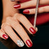 2.N Signature(ND-411):在都市夜晚華麗閃耀的紅色霓虹燈中,白色光感為底加上抽象紅色線條,是熱愛穿套裝、喜愛都會俐落打扮的美人最佳新春甲彩。
