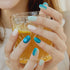 創意來自馬爾地夫海洋的絢彩指甲貼。美甲片的設計聚焦於被珊瑚礁環繞的馬爾地夫清澄大海。以有透明感、宛如水滴般閃耀的玻璃配件為重點,營造出清涼夏季的氛圍。連指尖也充滿度假氣息•