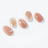 這款甲貼以透明糖漿為基底, 再於上面層層疊加珊瑚粉色和鉑金閃粉, 綻放出柔和的光澤 🌟