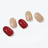 色彩組合指甲貼。正宗的酒紅色和米色配上像玻璃珠般閃耀的亮粉,塑造出俐落的指甲貼。