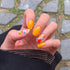 鑲嵌著微笑或愛心等可愛圖案,是像玩具一樣可愛的指甲貼。是與明亮的維他命顏色(柑橘色)結合,吸引目光注意的設計。