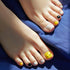 會微笑的設計! 這款夏季修腳護理採用亮黃色和黑色凝膠、復古圓點圖案以及頑皮的大笑笑臉。