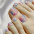 夢幻的藍色和粉色漸變色,再搭配上細閃,像是踩著粉紅色的浪漫海灘和夏日的藍天,充滿夏日浪漫氛圍的一款腳甲設計。